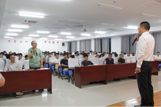 2021年6月24日晚上7:00,受谈球吧官方网站邀请,中勘集团创始人胡正森博士在员工活动中心2001报告厅为师生们举行了一场别开生面的讲座,建工公司经理王林均、校办副主任朱德利出席,公司工程管理、土木工程专业约200名师生参加讲座。讲座由建筑工程公司党委书记何璘主持。