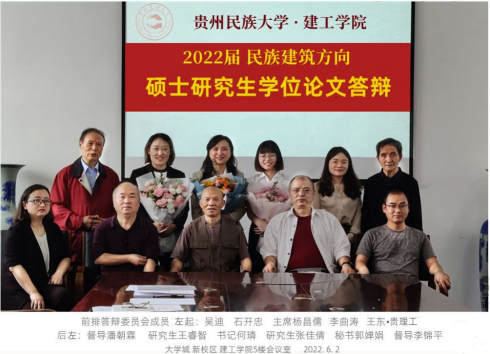 2022年6月2日上午9点,公司2019级民族学专业民族建筑方向硕士研究生论文答辩会在谈球吧官方网站A504举行。本次论文答辩主席为谈球吧民族学与历史学公司杨昌儒教授,答辩委员包括谈球吧民族学与历史学公司石开忠教授、贵州理工公司建筑与城市规划公司王东副教授、谈球吧官方网站李曲涛教授及吴迪副教授,校教学督导潘朝霖老师、李锦平老师以及谈球吧官方网站何璘书记、答辩秘书郭婵娟老师均参加了本次会议,民族建筑方向低年级研究生们旁听学习。