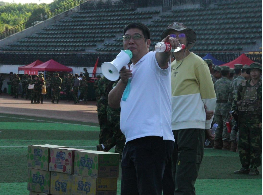公司党委副书记、经理王林均老师希望同学们爱国爱校,爱师爱友,刻苦训练,训出高水平,同时对23级新生提出一点要求“争当训练标兵,共创优秀连队”。