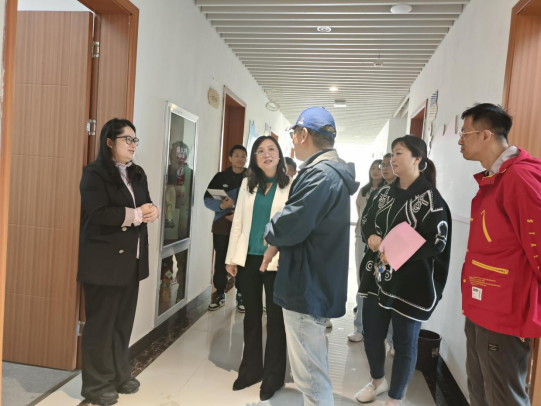 座谈会结束之后,何璘书记带领肖学斌书记、杨霈宣老师参观公司教学环境以及员工作品展览。并建议公司同学立足西南地区民族建筑特色,深挖各民族传统文化,树立文化自信,铸牢中华民族共同体意识。
