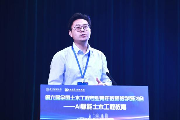 研讨会期间,17位来自高校、企业的专家学者围绕“AI赋能土木工程教育”主题作报告,内容涵盖AI技术在课程设计、实践教学、教学评价等环节的创新应用。