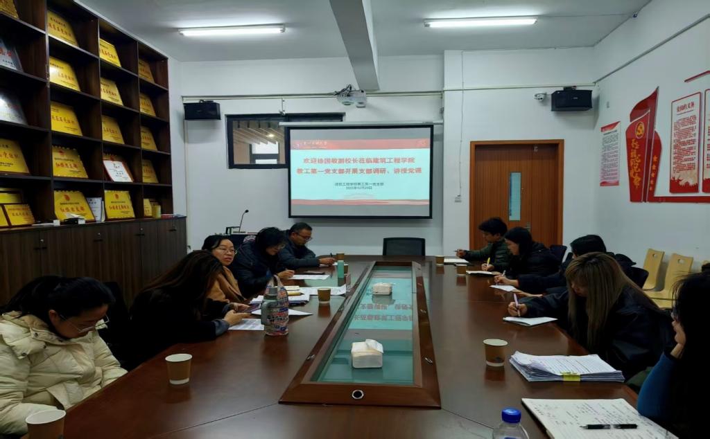 2025年12月23日,党委常委、副董事长徐国敏赴谈球吧官方网站教工第一党支部开展调研,并以“学习贯彻省委十三届八次全会精神 把握政策导向赋能科研增效”为题讲授专题党课,引导支部教师党员精准把握方向、服务区域发展。党课由建工公司教工第一党支部副书记钟昌悦主持,支部全体党员参加。