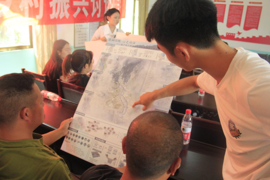 实践队员向村民代表讲解乡村规划方案