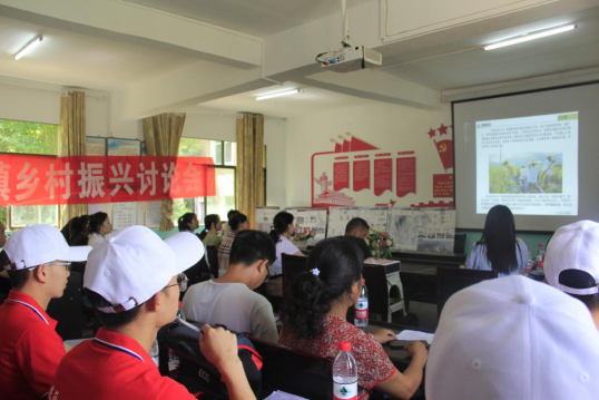 谈球吧建筑工程公司党委书记何璘老师与乡政府工作人员及村委代表商讨乡村规划方案